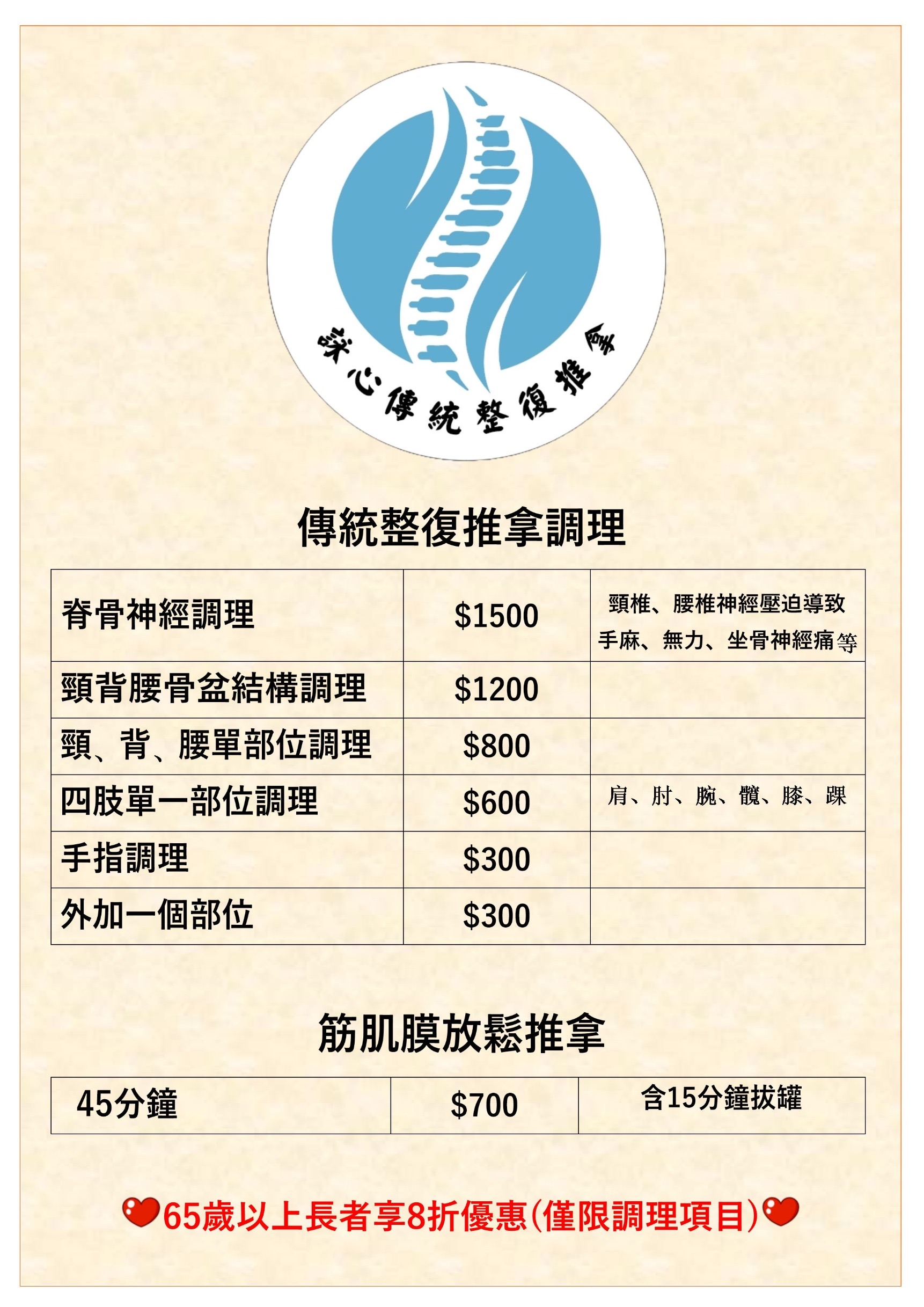 我們運用傳統徒手整復手法,透過細膩的手感與專業技巧,讓身體在自然的狀態下恢復舒適與平衡。