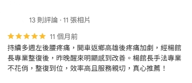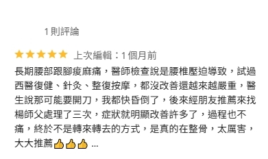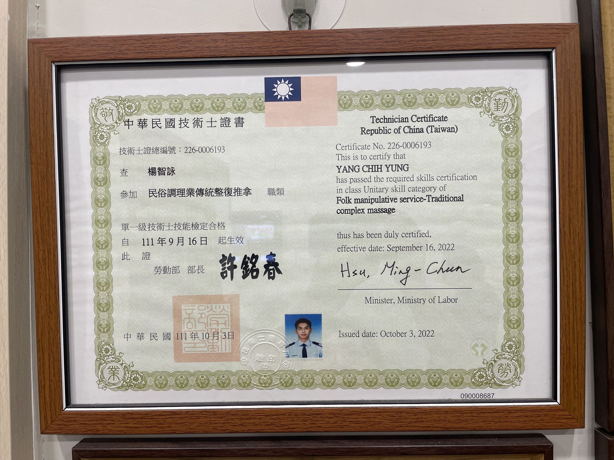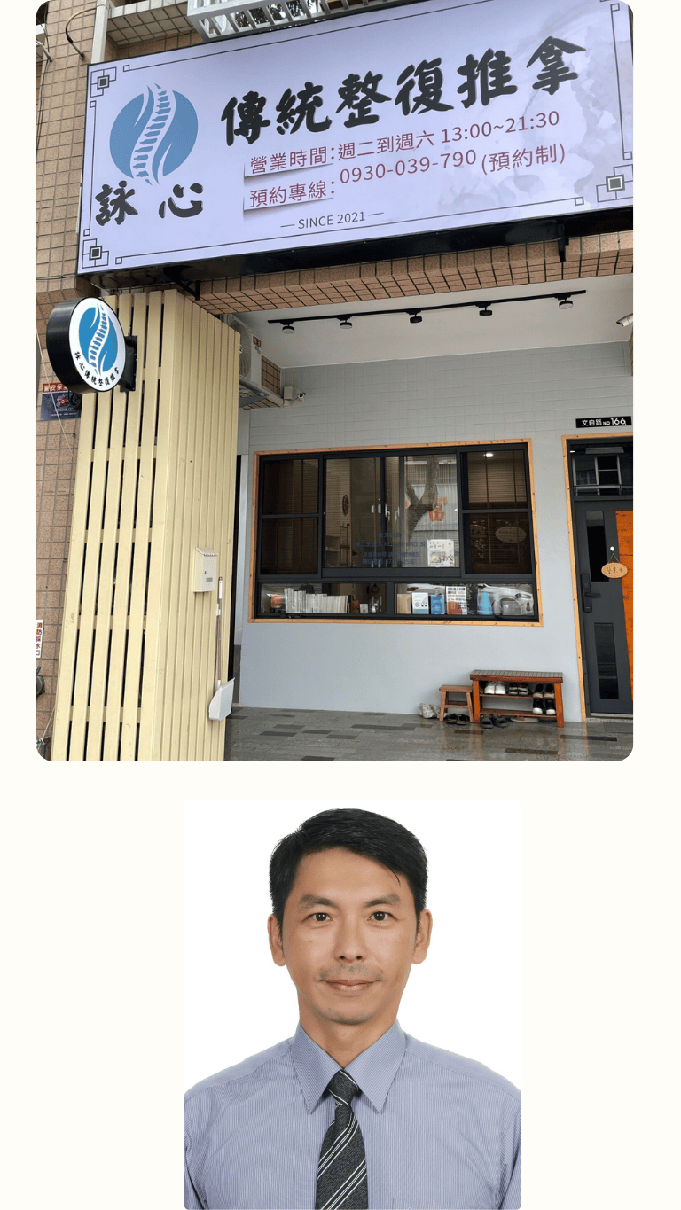 本館由具備 國家級調理技術士資格 的楊師父親自服務。多年來,他透過專業知識與細膩手法,陪伴無數顧客在放鬆調理的過程中,逐步找回身體的自在感